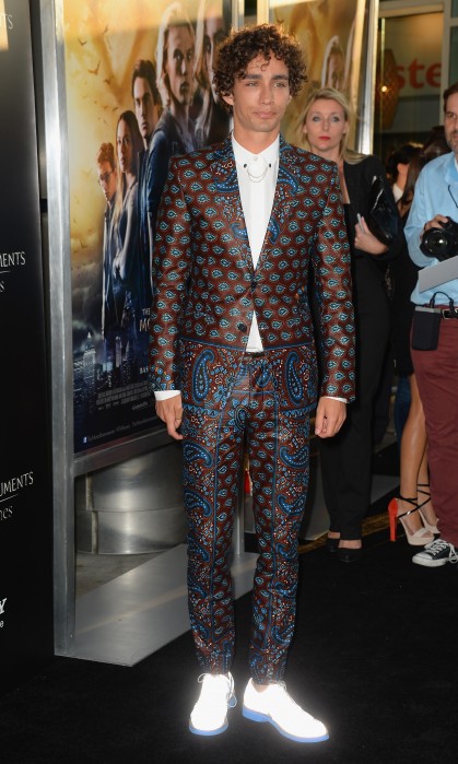 WTF might, might, have got over the paisley suit had the jacket not conformed to the new Norman Wisdom school of ill-fitting tightness and been slightly less, er, paisley but the suit is rendered irrelevant by the real issue which is WHAT THE FUCK ARE THOSE SHOES? It is not just that WTF believes that men should only wear white shoes if they are either doctors or playing sport but these shoes look positively radio-active. WTF is only surprised that men in protective suits and breathing masks did not storm the cinema and carry Robert off like they did with ET. Del Toro and Dent de Man…go home.